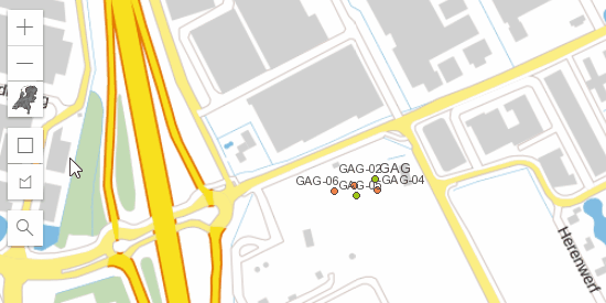 Klik in de linker bovenhoek op het rechthoek icoon. Klik vervolgens op de kaart waar u de selectie wilt starten en houd deze ingedrukt. Sleep een rechthoek over de kaart om uw selectie te maken. Laat vervolgens los om de selectie te beëindigen. U kunt de selectie annuleren door de selectie los te laten op dezelfde plek als u de selectie gestart bent. Hierdoor selecteert u geen objecten. Het is tijdens het maken van een rechthoekige selectie niet mogelijk om de kaart te verschuiven.